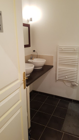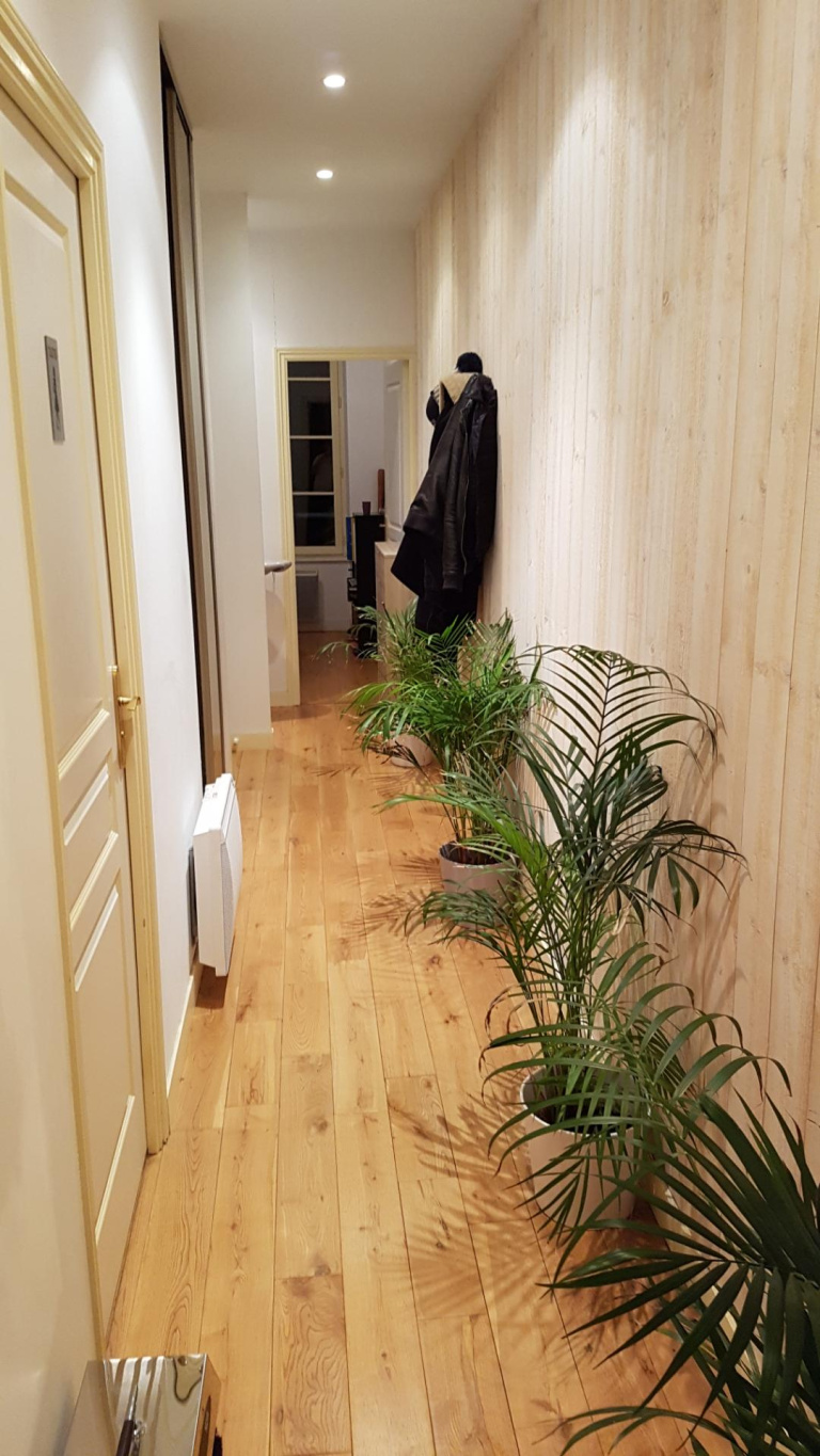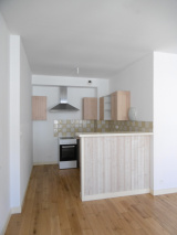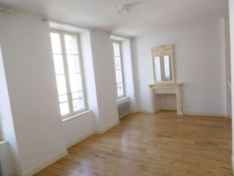 HAUTE VILLE, appartement au 2ème étage d'un petit immeuble comprenant une entrée, une cuisine aménagée équipée (hotte) ouverte sur pèce de vie, une chambre, un bureau, une salle d'eau vec wc.