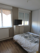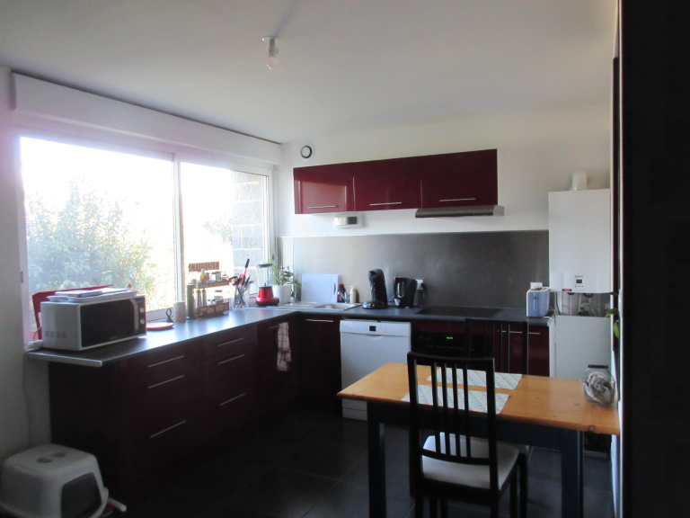FOUGERES : Quartier du croissant, maison T4 comprenant une entrée, une cuisine aménagée équipée (four-plaques-hotte) ouverte sur pièce de vie, un wc. A l'étage : 3 chambres, une salle d'eau.