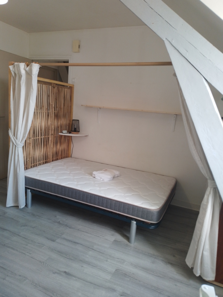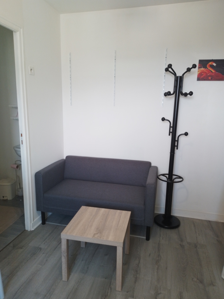 FOUGERES : Studio MEUBLE de 17 m² au 2ème étage d'un petit immeuble comprenant un coin cuisine aménagée équipée(gazinière-hotte-frigidaire-lave-linge) ouverte sur pièce de vie, une salle d'eau avec wc.
