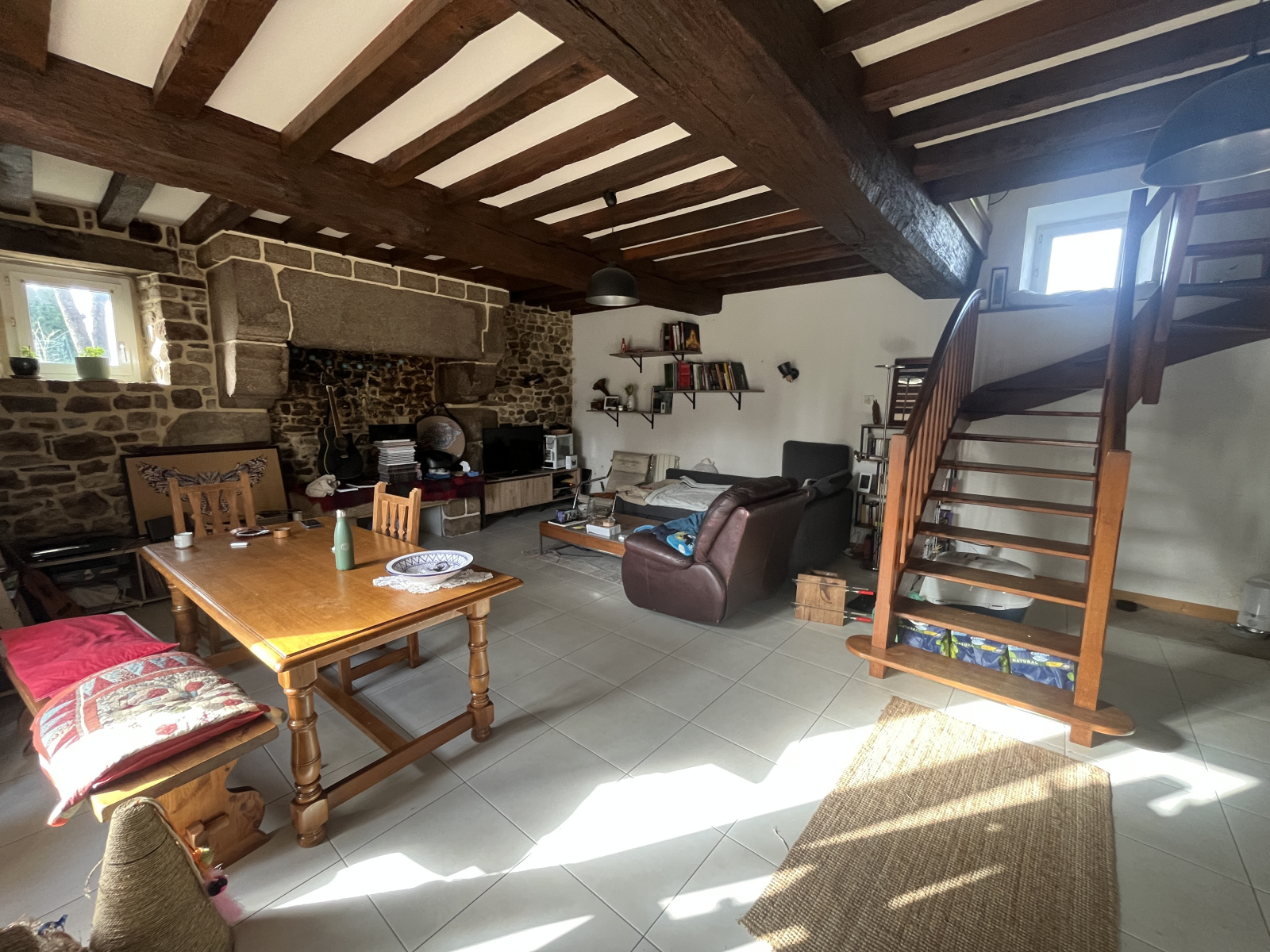 D’environ 93 m², elle comprend au rez-de-chaussée une belle pièce de vie de plus de 39 m² avec cuisine aménagée et équipée, une salle d’eau et une buanderie. À l’étage : quatre chambres, une salle de bain et un WC.